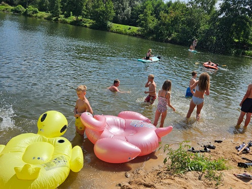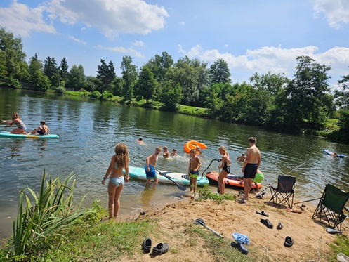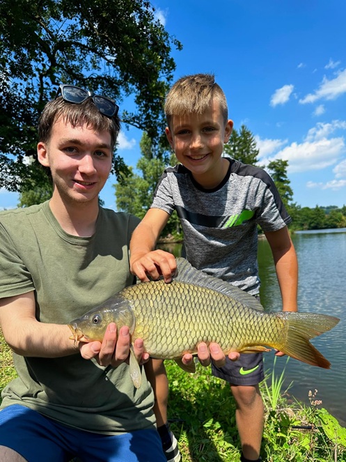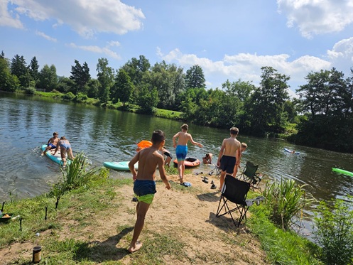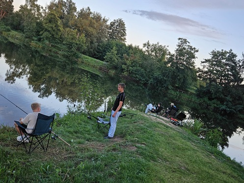 Tagsüber stand natürlich das Angeln im Mittelpunkt. Die jungen Teilnehmer konnten zahlreiche Fische fangen und erlebten dabei spannende Momente am Wasser. Für eine willkommene Abkühlung sorgte das Schwimmen am Weiher in der vereinseigenen Kiesgrube – ein echtes Highlight bei den sommerlichen Temperaturen.