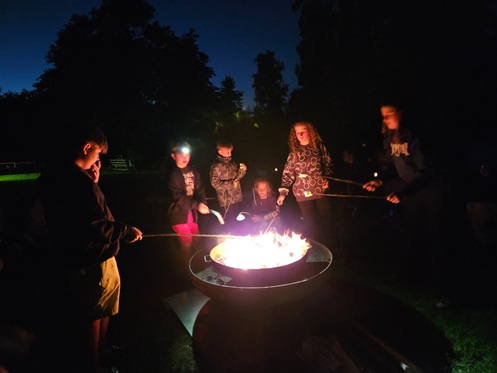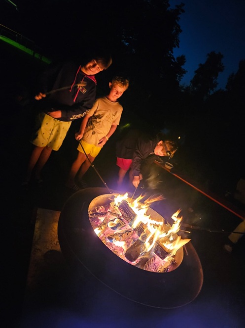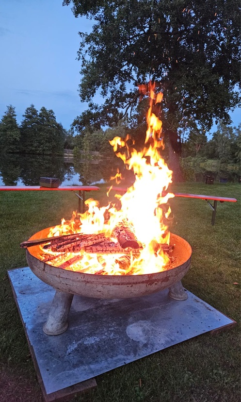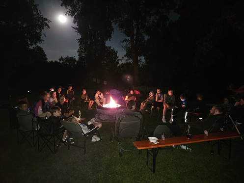 Abends knisterte das Lagerfeuer und lud zum gemütlichen Beisammensein ein. Hier wurden Kartoffeln und Marshmallows gegrillt, Geschichten erzählt und sogar das Tanzbein geschwungen.