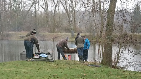 Um 14.00 Uhr trafen sich 14 Mitglieder, darunter der zweite Vorstand Herbert Reitzig, die beiden Schriftführer, der Kassier, weitere Mitglieder des Ausschusses und zwei Jungfischer in Pressath an der vereinseigenen Kiesgrube. Bei eisigen 2 Grad Lufttemperatur hielt sich zunächst die Begeisterung in Grenzen, die mitgebrachten Bratwürste und Steaks im kalten Wasser stehend zum Verzehr zuzubereiten. Nachdem jedoch der erste Kälteschmerz überwunden war, genossen die Teilnehmer die von Sebastian Kneipp entwickelte „Hydrotherapie.“